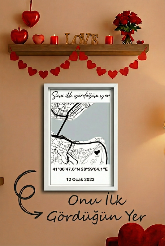 "Onu İlk Gördüğün Yer" Baskılı Metal Poster 20x30 CM (Sevgililer Günü Özel)